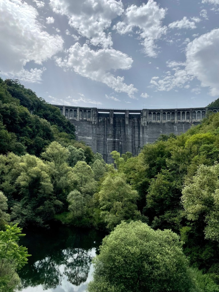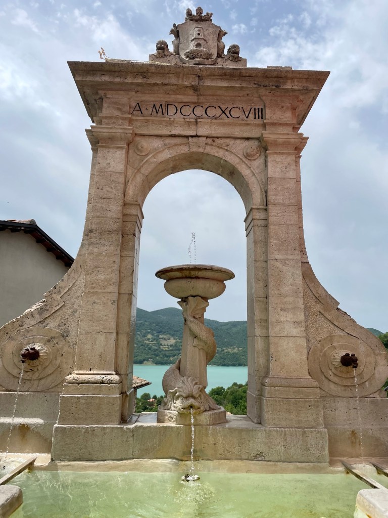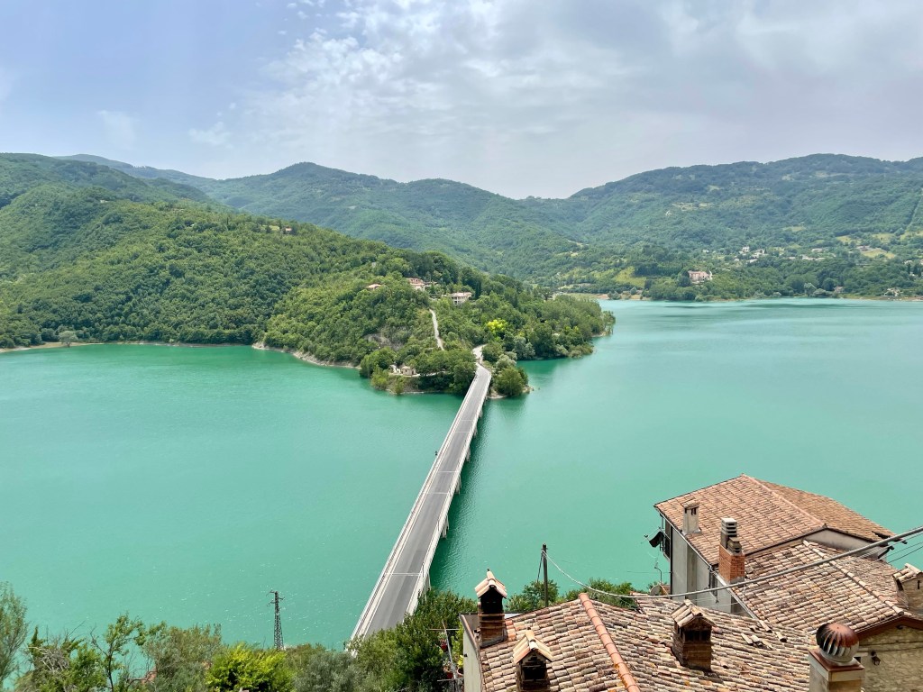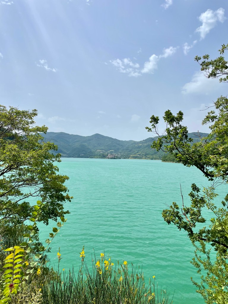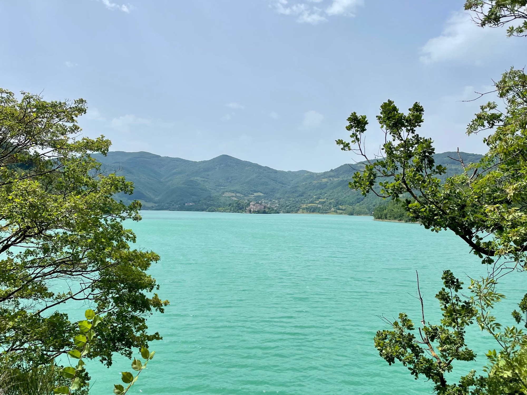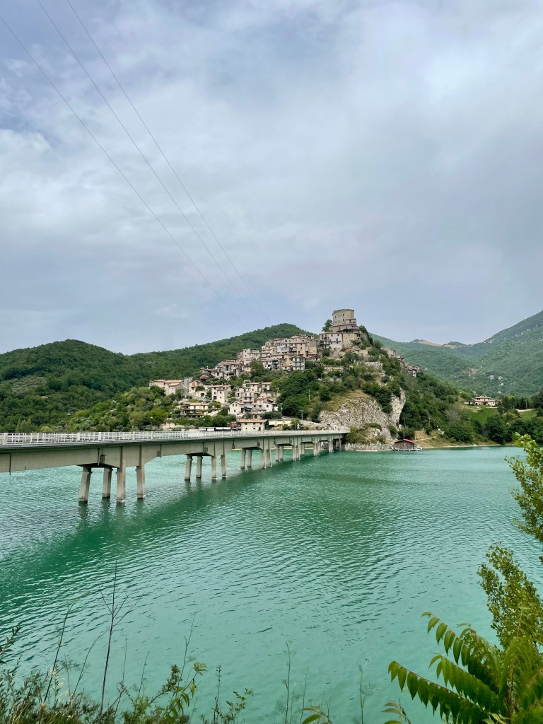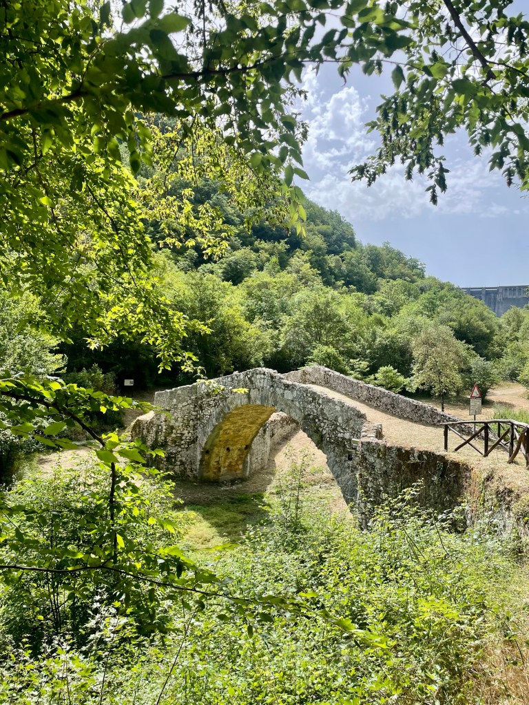 When I stopped for coffee and a party, I wound up spilling my coffee trying to get it to a table by carrying too much- of course the kind people rushed to help and remake me another one, when the British instinct was just to make do with what was left in the saucer, this of course was a travesty to the Italians. As I supped my coffee there was an old Italian gentleman sitting in the square singing to himself, it was all rather peaceful. Feeling refreshed it was time to continue on- this time towards a man made lake from the 1930’s, and 11th C bridge and a dam.